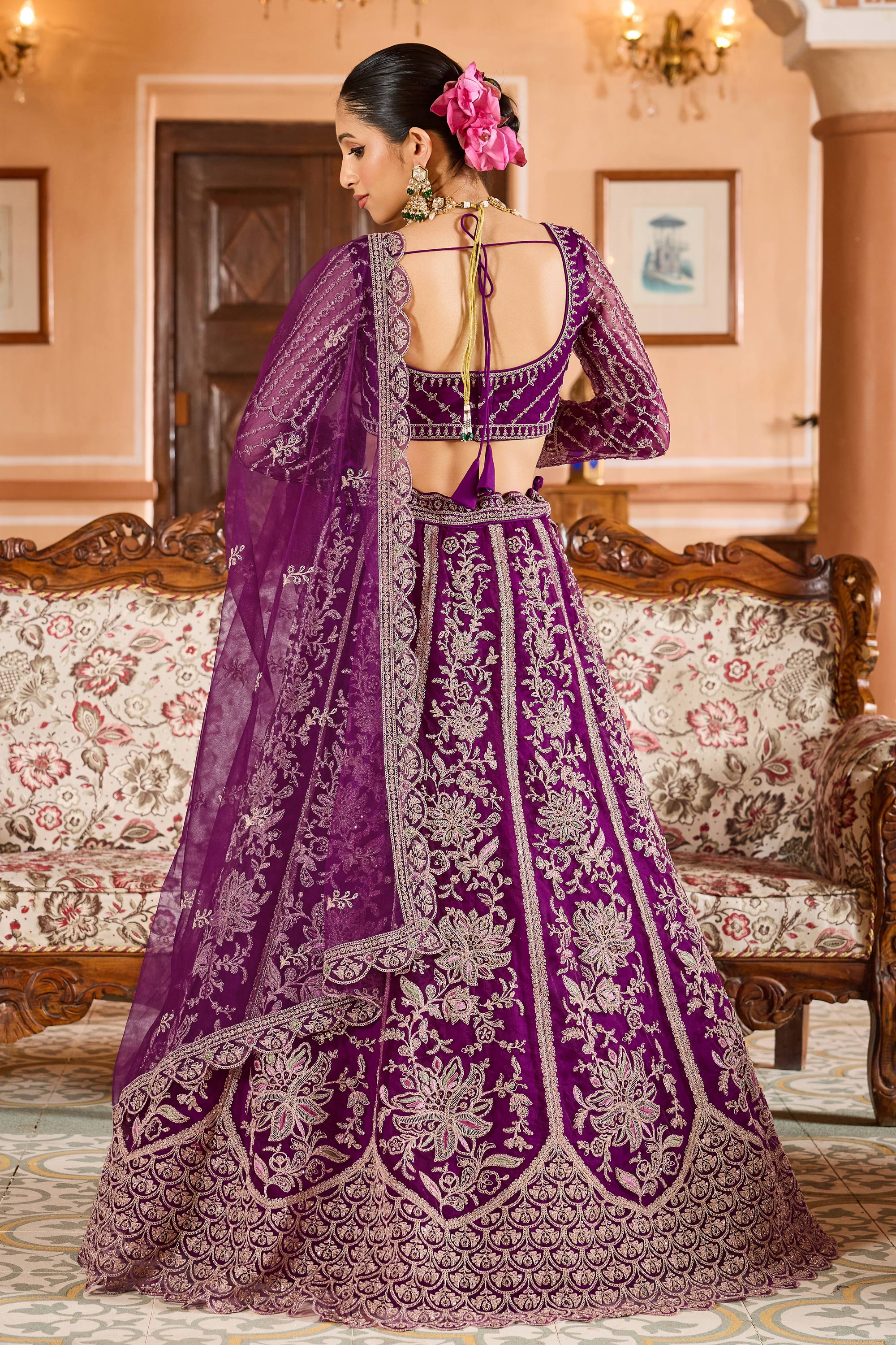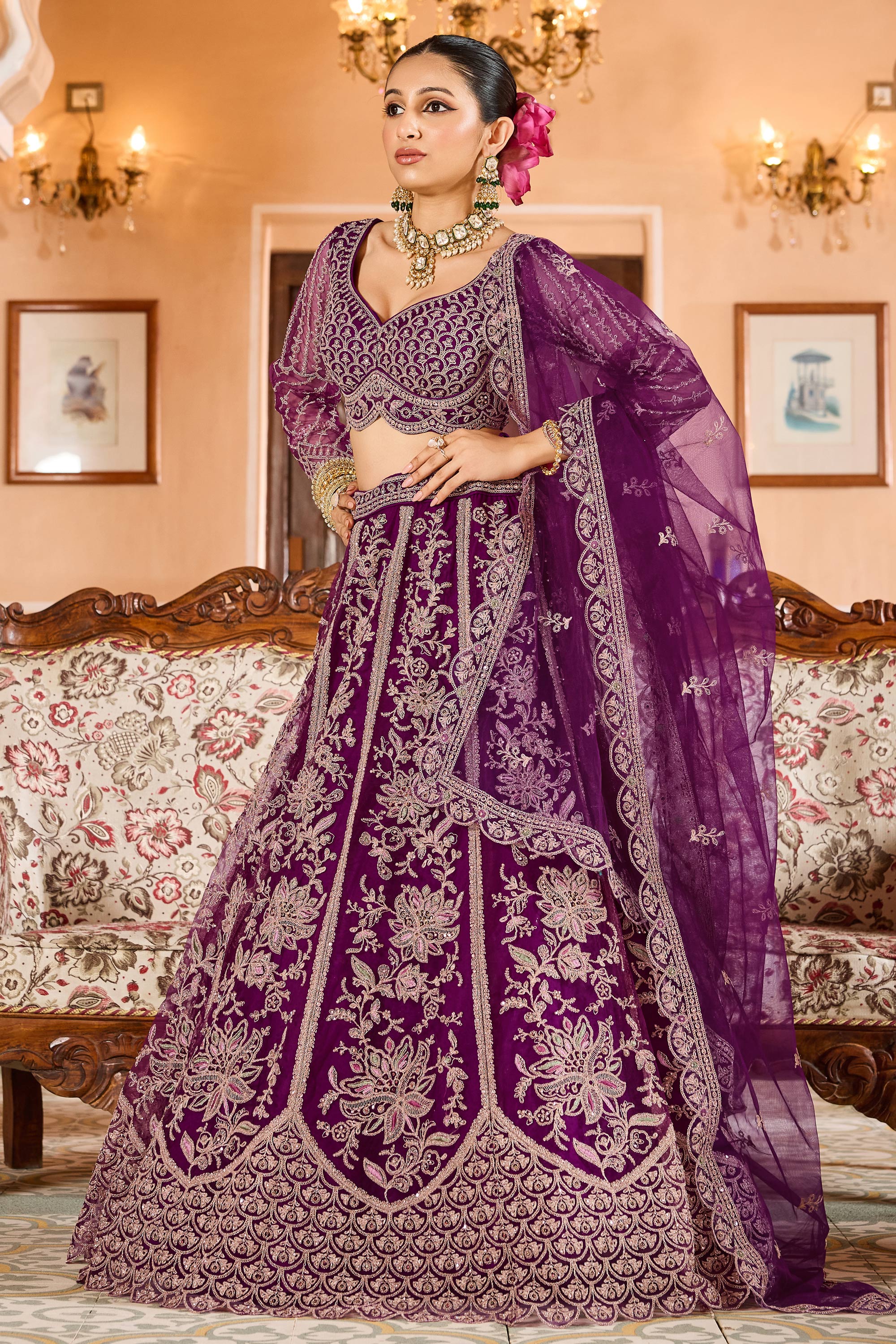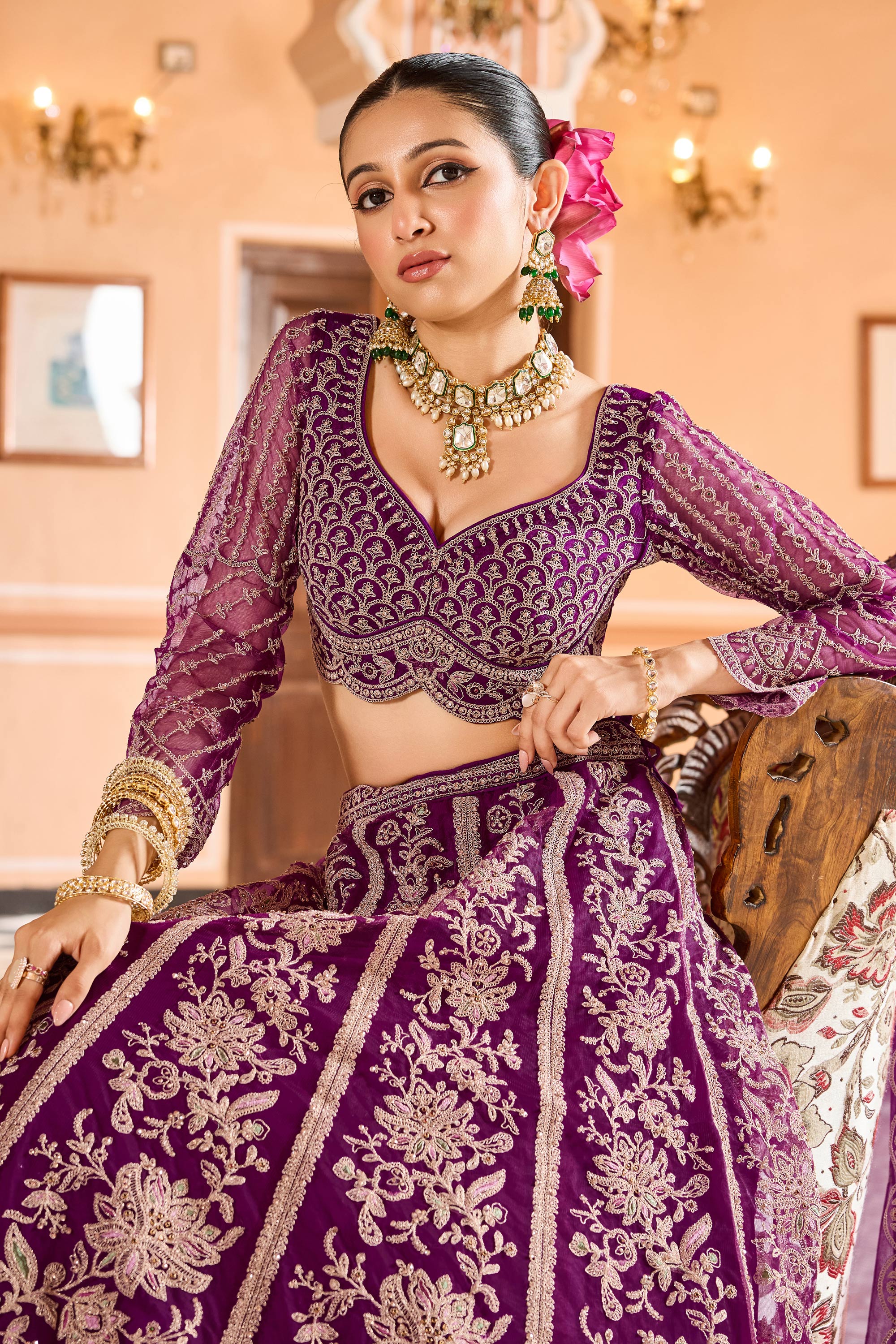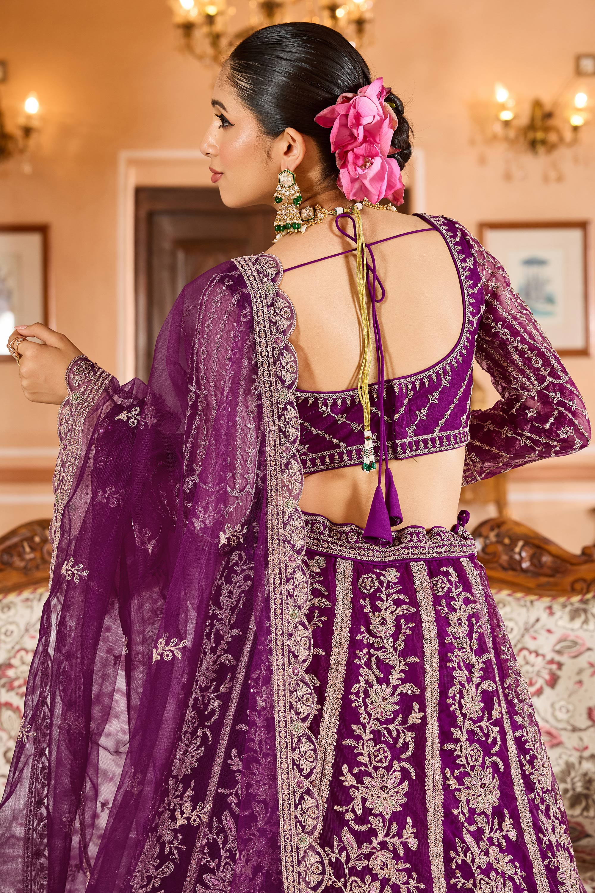 Embroidered Purple Net Fabric Lehenga Choli For Wedding Wear