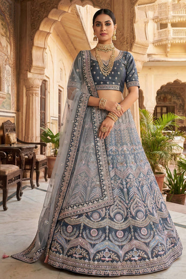 Embroidered Velvet Fabric Teal Bridal Lehenga Choli