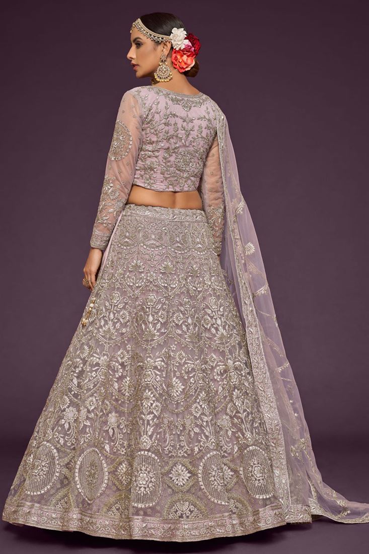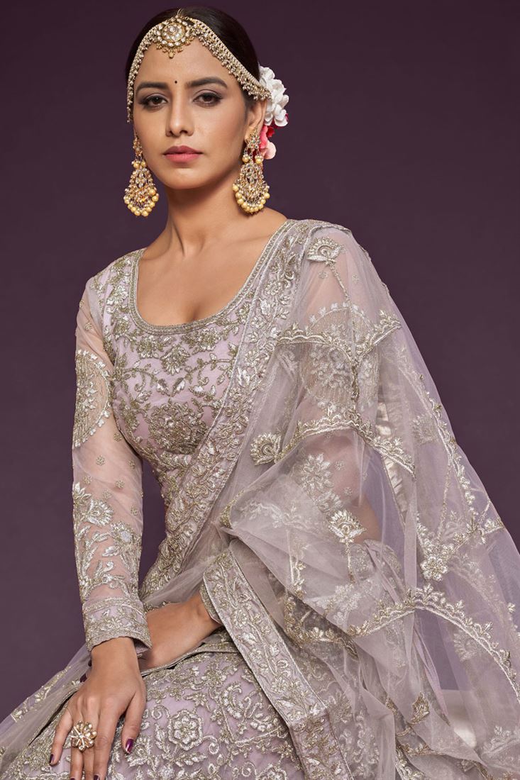 Embroidered Work On Cream Color Gorgeous Lehenga In Net Fabric