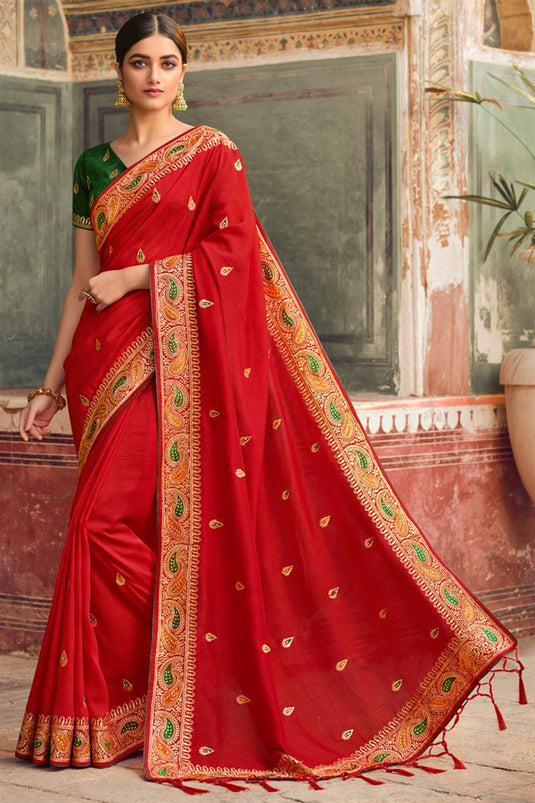 Embroidered Work On Maroon Color Amazing Art Silk Saree
