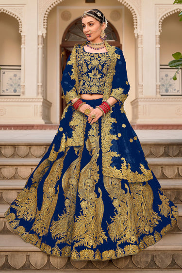 Emerald Blue Heavy Velvet Bridal Lehenga
