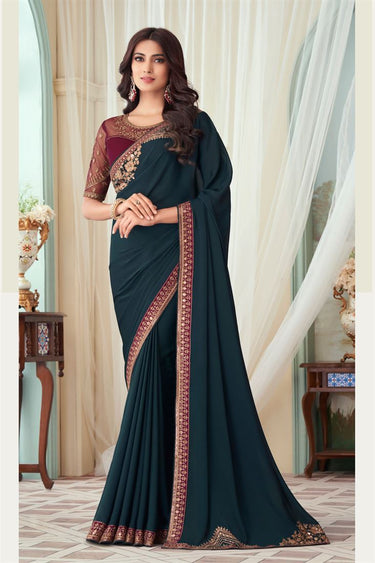 Enchanting Emerald Teal Blue Art Silk Party Saree
