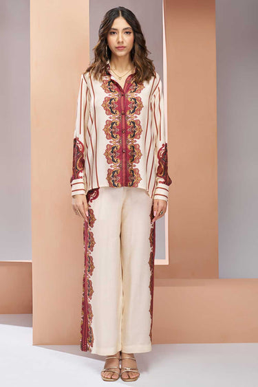 Step into effortless style with this readymade co-Ord set, crafted from luxurious Muslin Silk for a soft and breezy feel. Designed for casual chic, the set features intricate printed work, adding a touch of modern elegance to your everyday wardrobe. Whether you're heading out for brunch or a relaxed evening, this co-ord set is your go-to for comfort with class. Due to digital photography, slight color variations may occur.