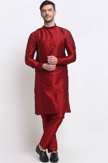 Engaging Maroon Color Dhupion Silk Fabric Kurta Pyjama