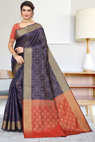 Engaging Navy Blue Color Patola Silk Fabric Saree In Festival Wear