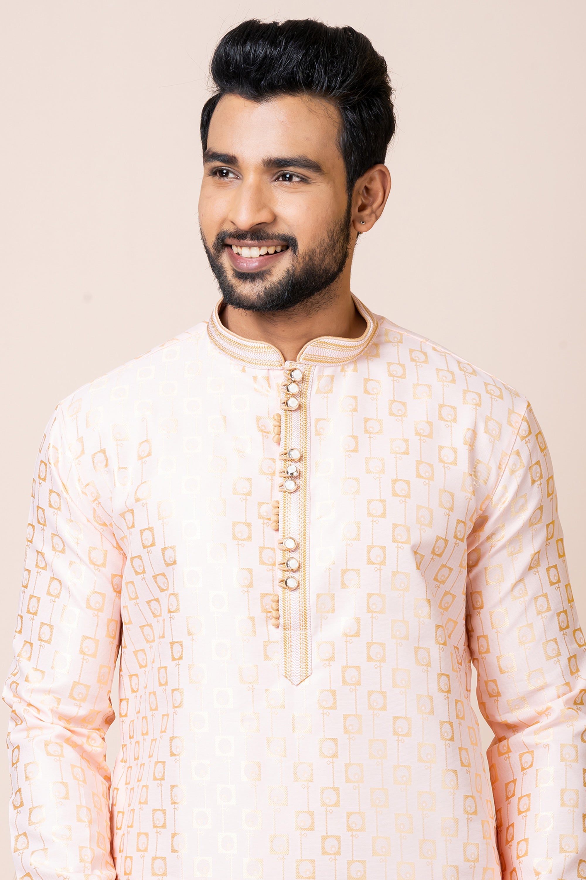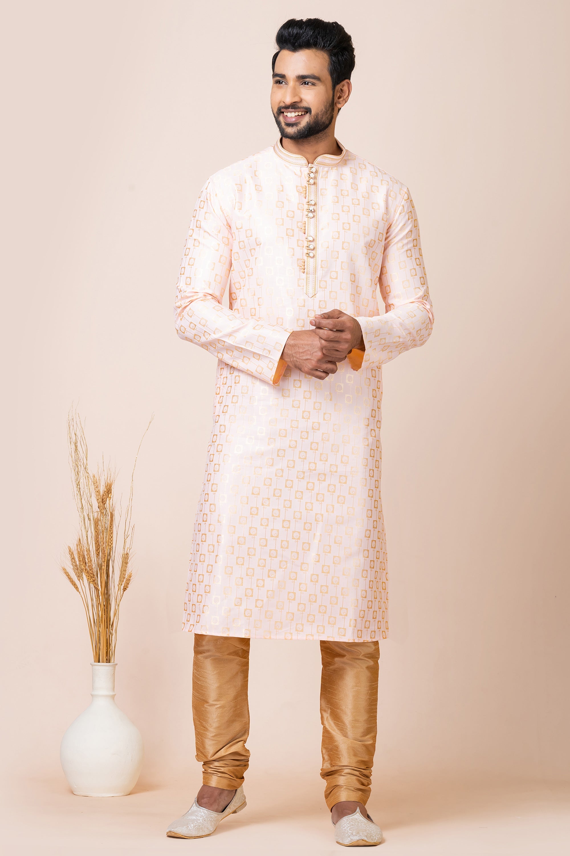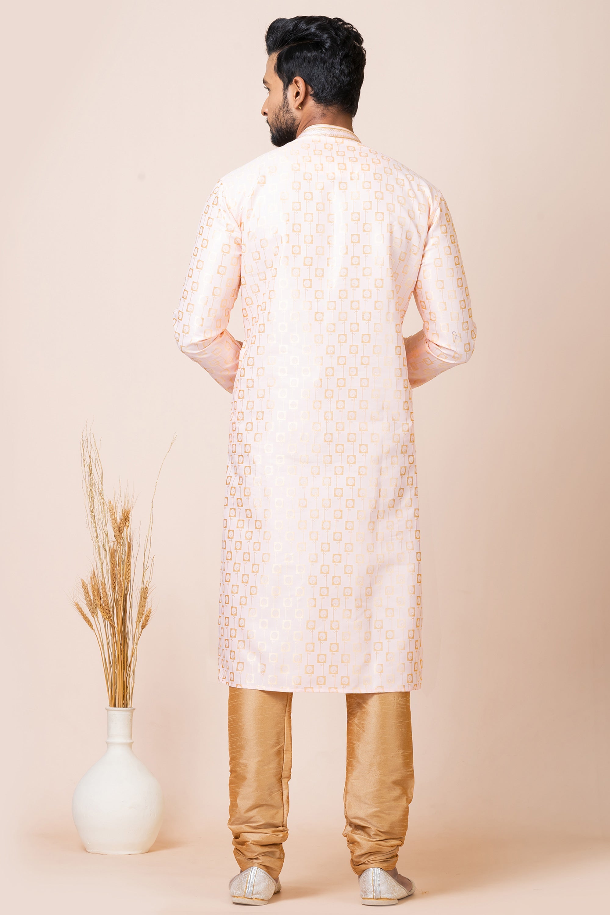 Engaging Peach Color Jacquard Fabric Readymade Kurta Pyjama