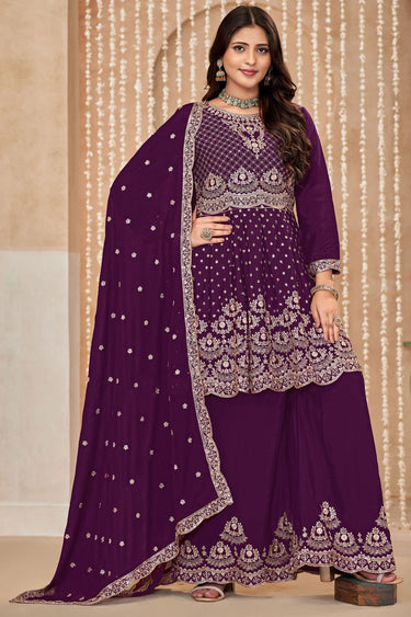 Engaging Purple Color Chinon Fabric Function Wear Palazzo Suit
