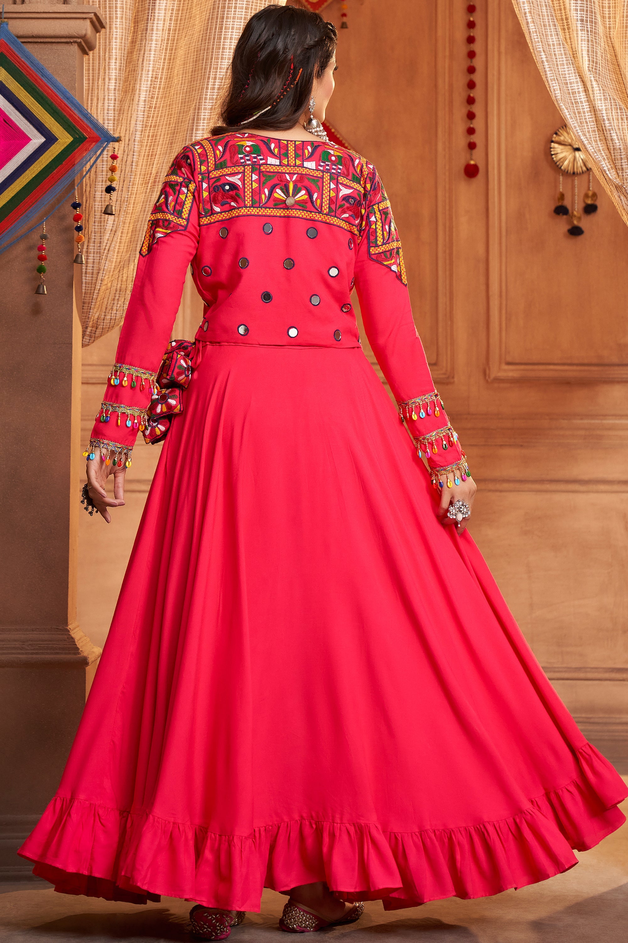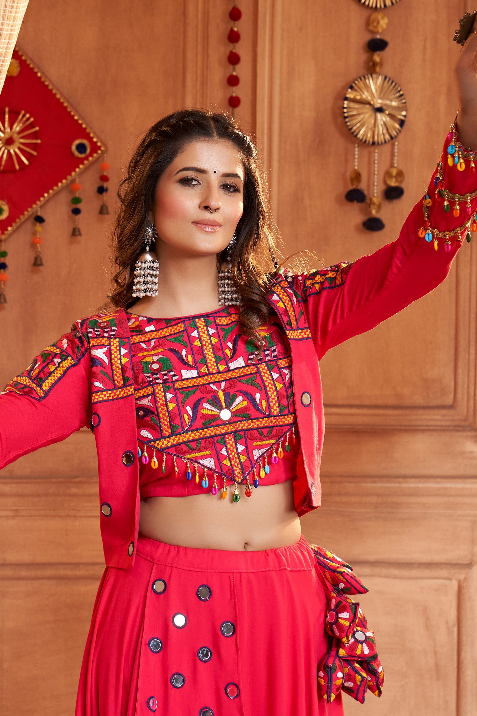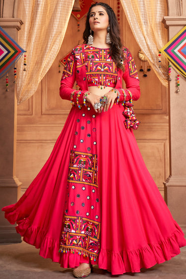 Engaging Rani Color Viscose Rayon Fabric Embroidered Work Navratri Special Lehenga Choli