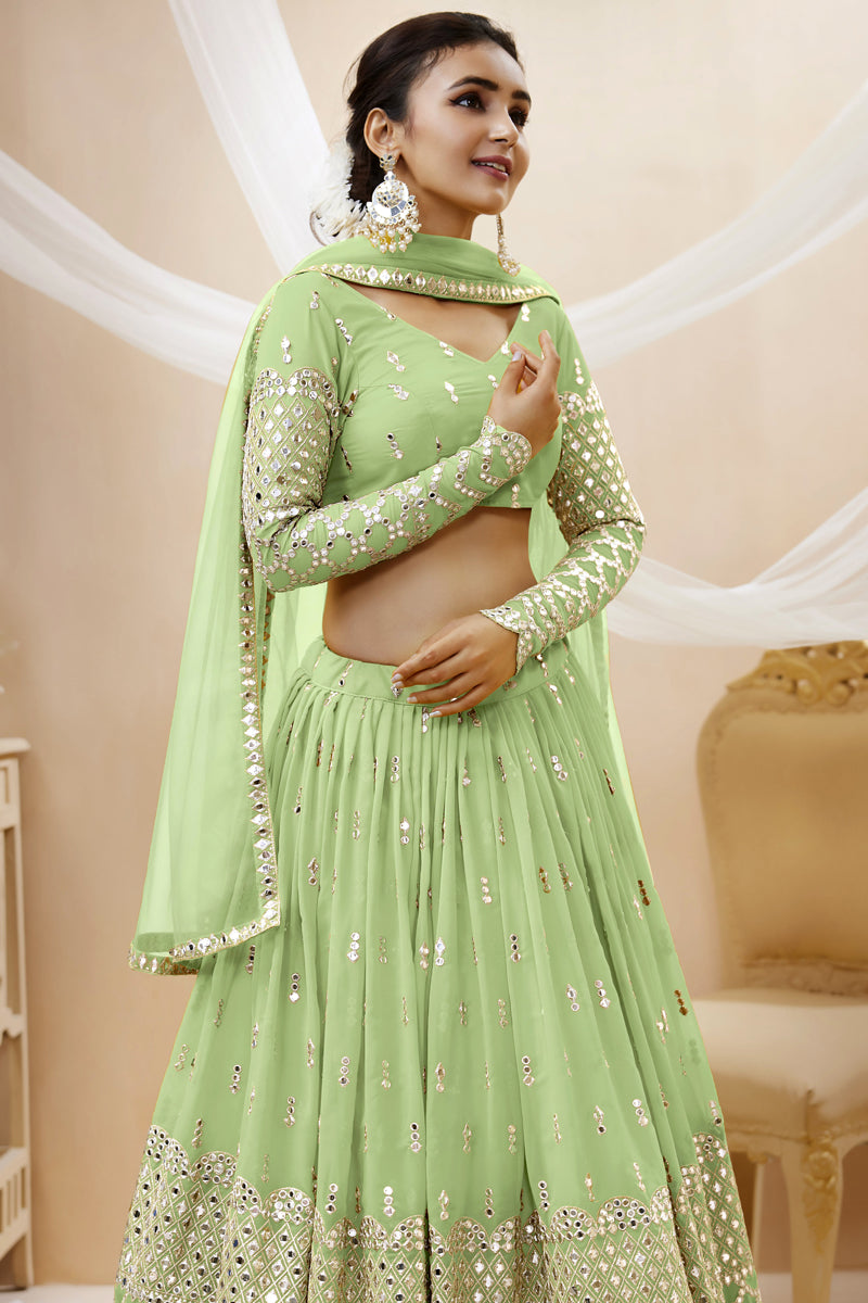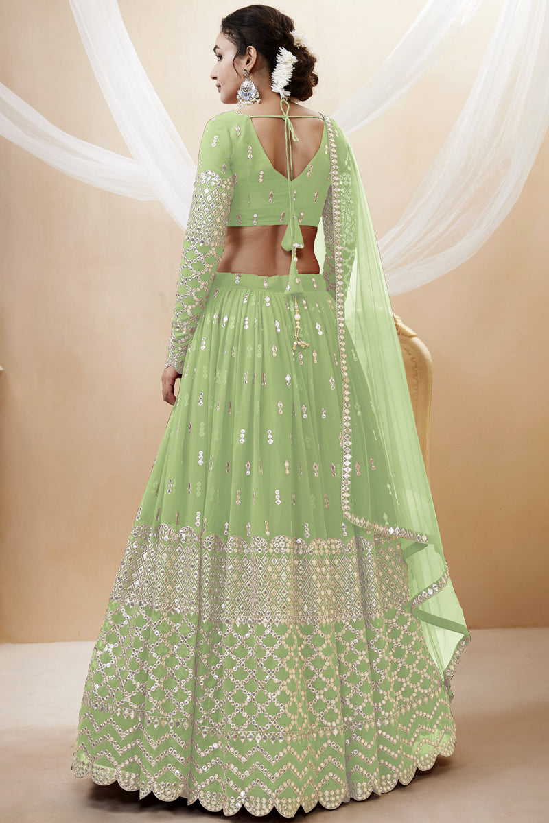 Engaging Sea Green Color Georgette Fabric Embroidered Work Wedding Wear Lehenga Choli
