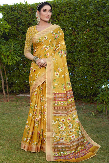 Engaging Yellow Color Cotton Silk Fabric Festive Look Saree
