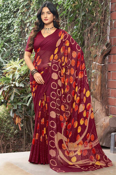 The printed design on the Maroon Color Satin saree adds a playful and contemporary touch. The intricate patterns and vibrant colors create a visually appealing look that complements a variety of skin tones and personal styles. You can easily pair this saree with a matching blouse or experiment with different blouse styles to create your own unique look.