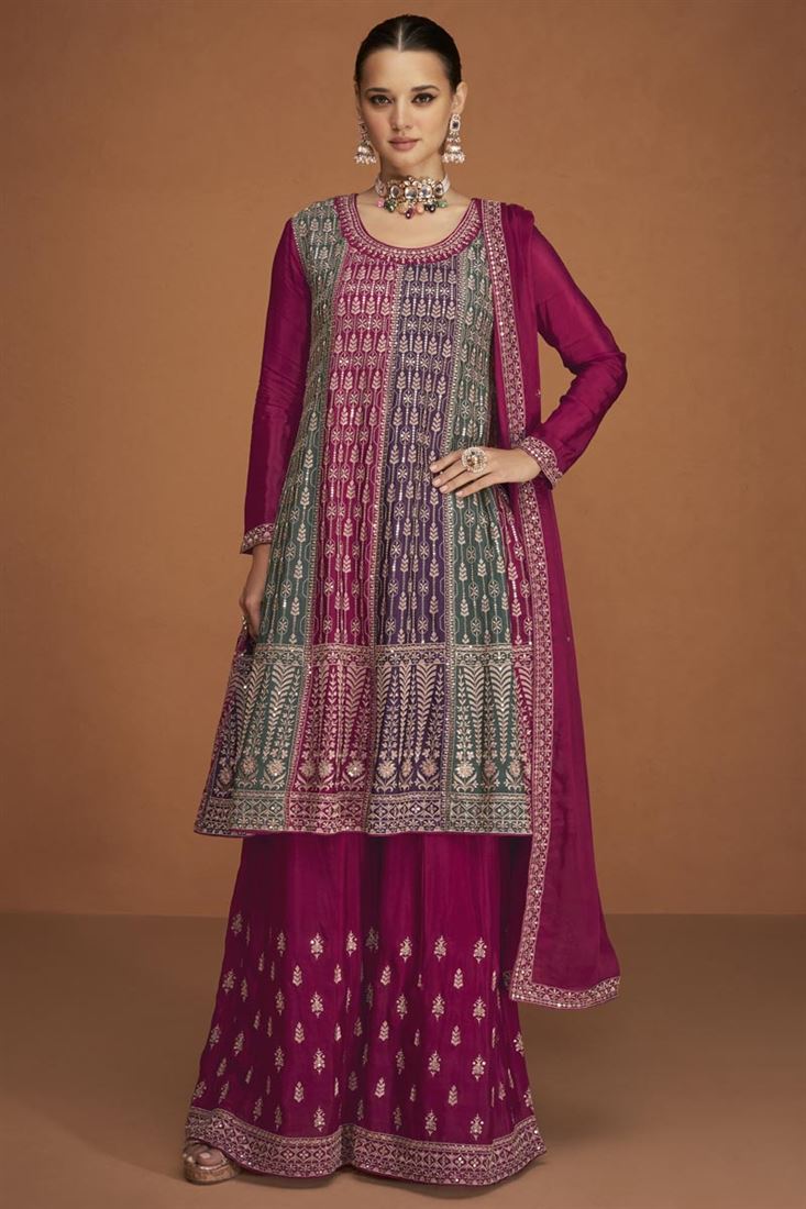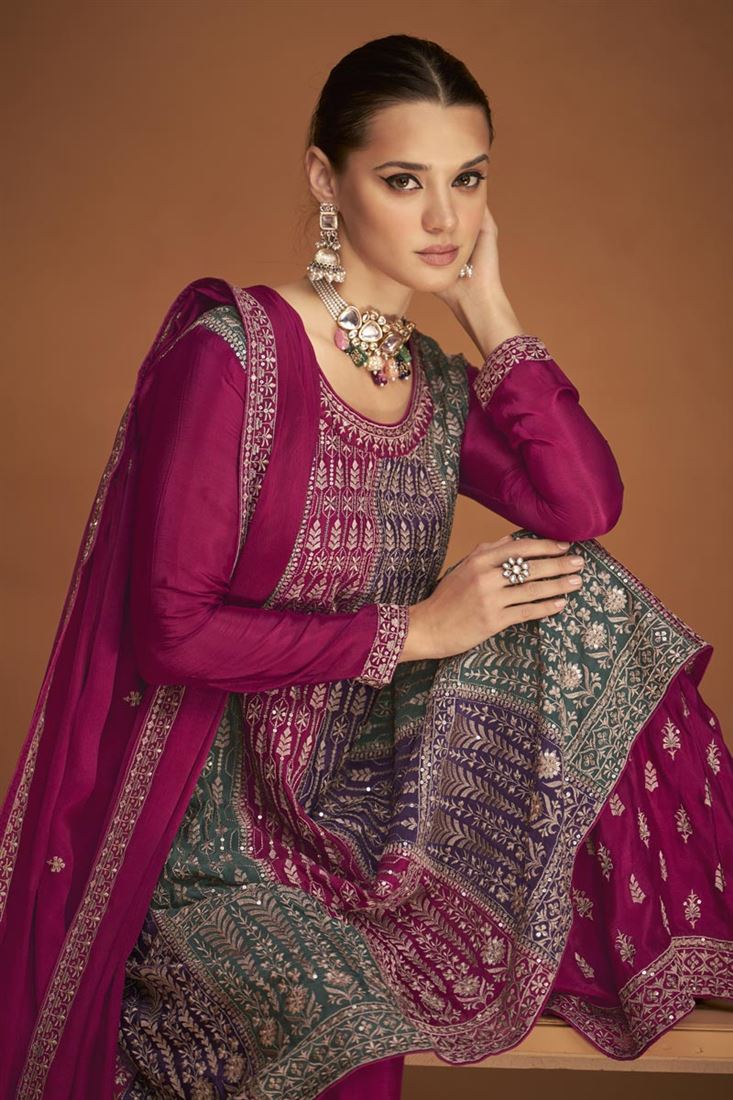Eugeniya Belousova Chinon Embroidered Classic Rani Color Sharara Suit