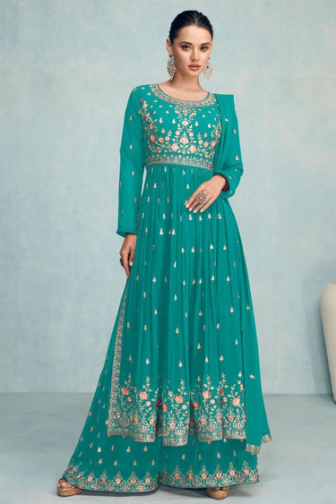Eugeniya Belousova Georgette Palazzo Suit in Sea Green Color
