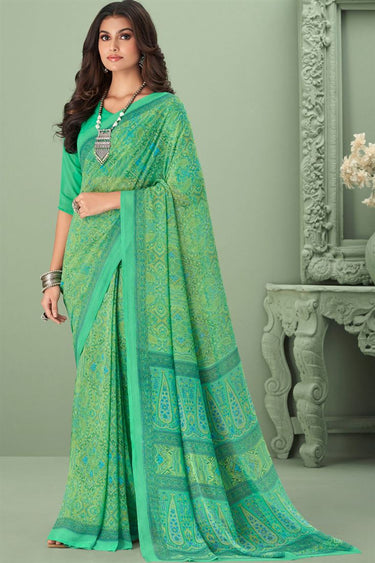 Excellent Georgette Fabric Sea Green Color Casual Look Saree
