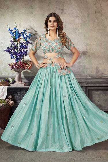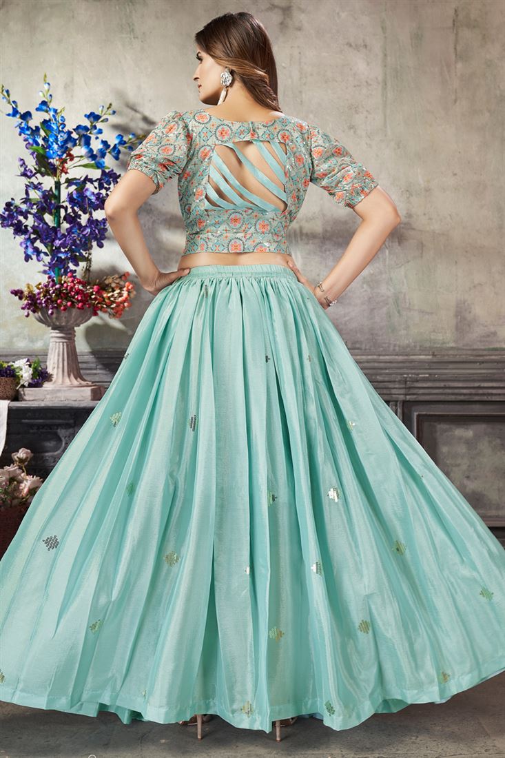 Exclusive Art Silk Fabric Sea Green Color Excellent Top With Skirt