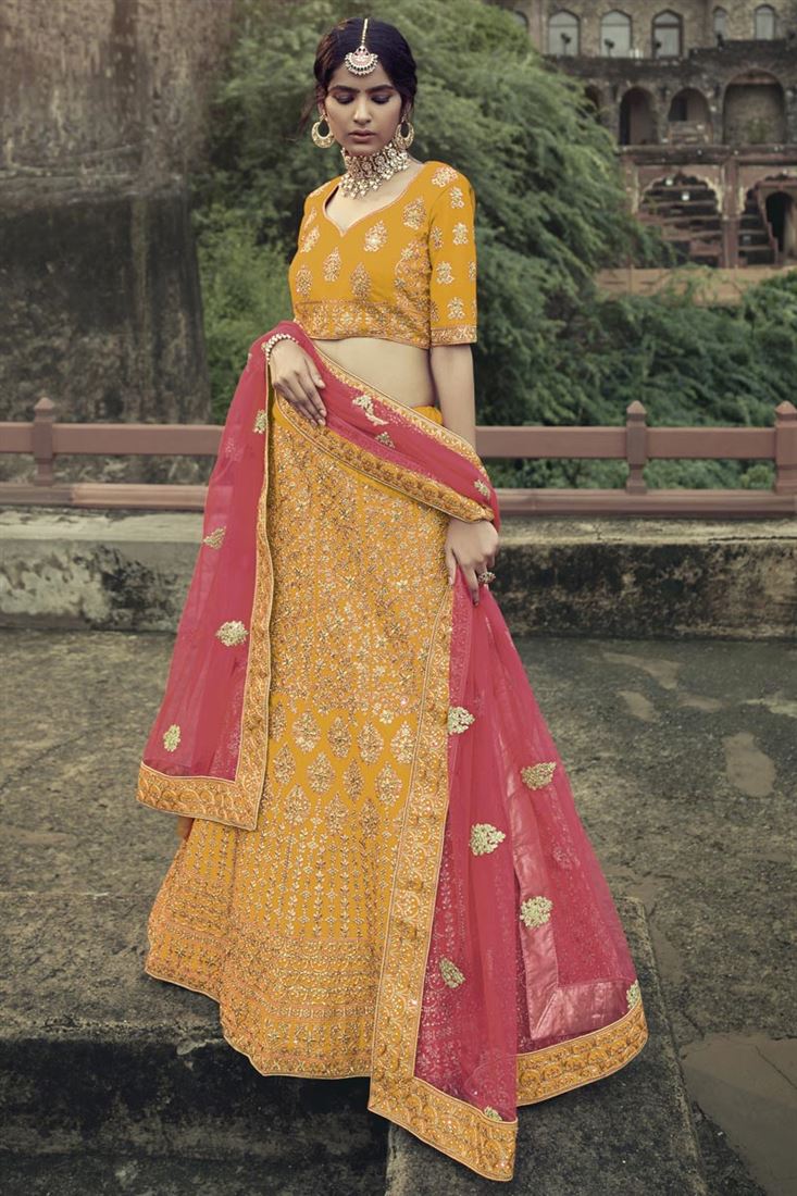 Exclusive Beautiful Yellow Color Heavy Embroidered Lehenga Choli