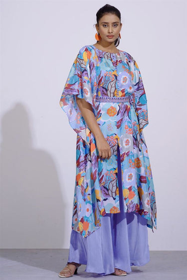 Exclusive Blue Color Silk Fabric Beautiful Readymade Kaftaan With Flared Pants