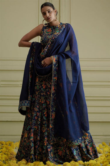 Exclusive Blue Color Silk Fabric Hand Embroidered Graceful Sangeet Wear Readymade Lehenga Choli