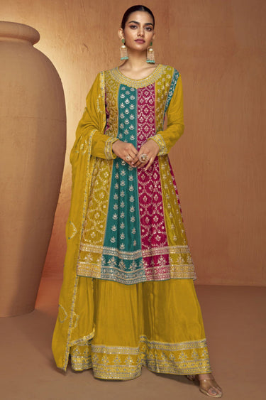Exclusive Chinon Fabric Embroidered Mustard Color Readymade Palazzo Suit