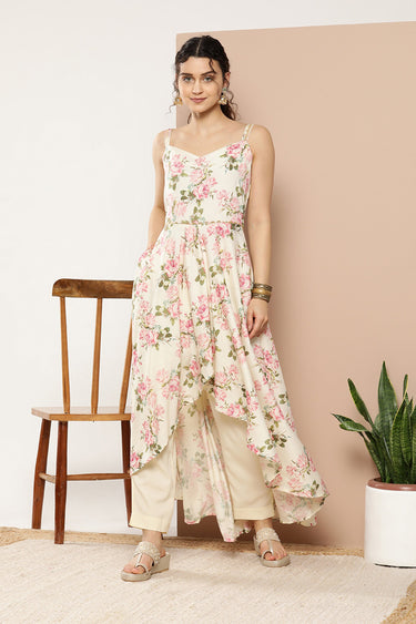 Exclusive Cream Color Printed Crepe Fabric Readymade Kurti With Bottom