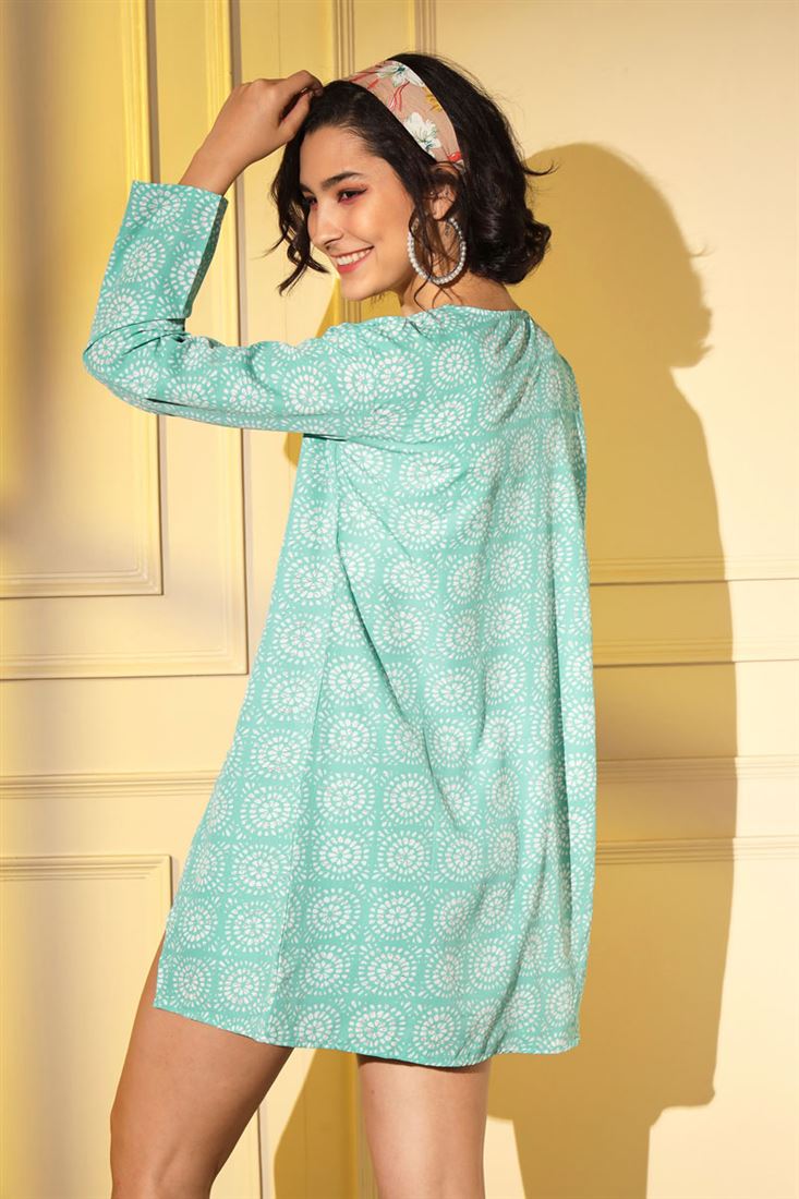 Exclusive Cyan Color Crepe Fabric Printed Co Ord Set Beach Dress