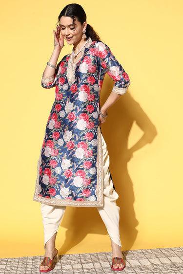 Exclusive Navy Blue Color Art Silk Fabric Readymade Kurti Bottom Set