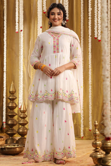 Exclusive Pastel And Bling White Ethnic Sharara Set With Dupatta