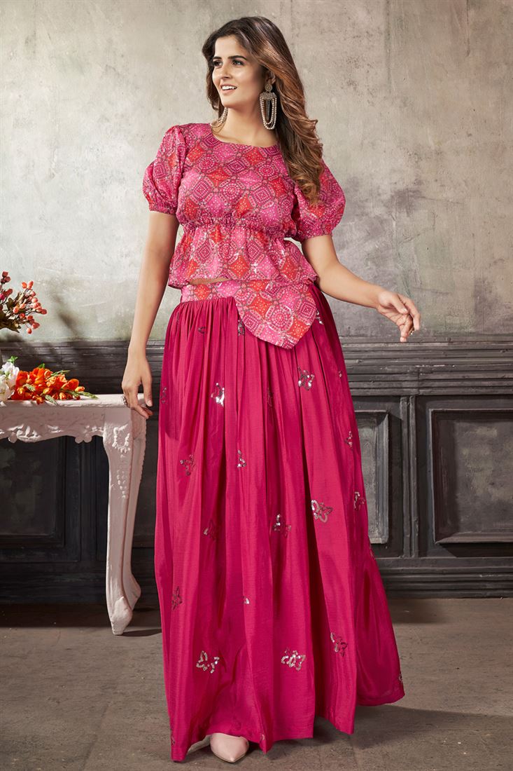 Exclusive Pink Color Amazing Top With Skirt In Art Silk Fabric
