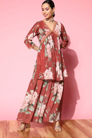 Exclusive Red Color Georgette Fabric Casual Wear Printed Readymade Top With Bottom Set