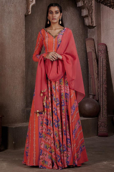 Exclusive Red Color Viscose Crepe Fabric Hand Embroidered Sangeet Wear Readymade Lehenga Choli