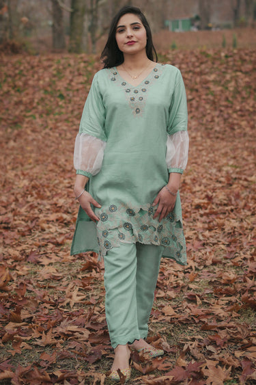 Exclusive Sea Green Silk Embroidered Co-Ord Set