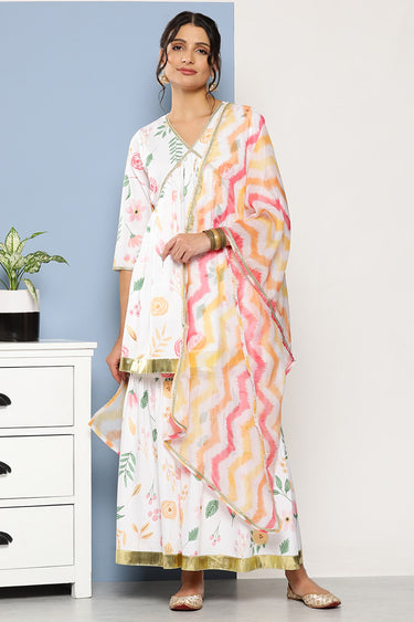 Exclusive White Color Crepe Fabric Festive Wear Printed Readymade Top With Bottom Dupatta Set