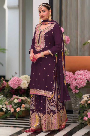 Fabulous Chinon Fabric Purple Color Readymade Palazzo Suit