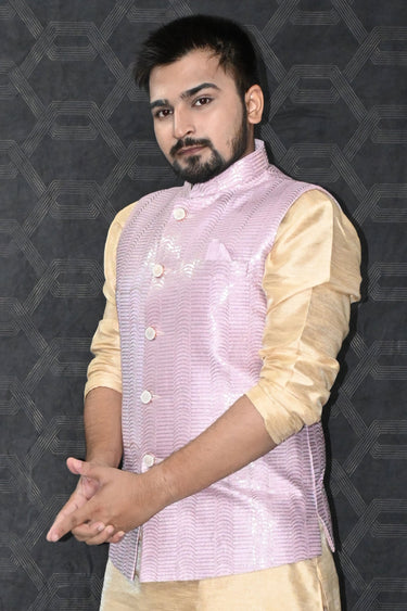 Fancy Art Silk Wedding Wear Readymade Designer Men Pink Color Jacket