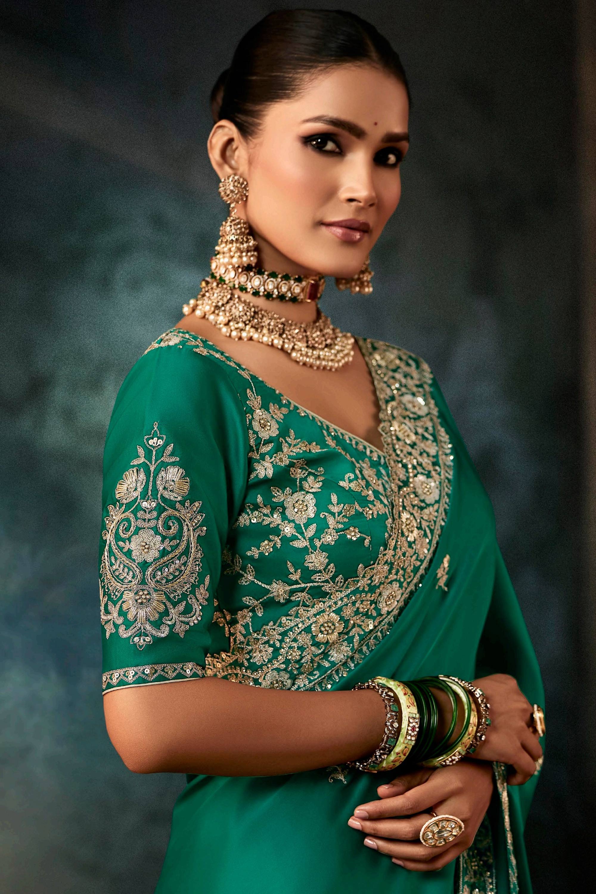 Embrace the art of traditional fashion with this exquisitely designed Heavy Embroidered Work Wedding Bridal Designer Saree. Its delicate yet elaborate embroidery reflects refined craftsmanship, making it the perfect attire for weddings, festive gatherings, and celebratory events. This saree's luxurious fabric is adorned with rich patterns, offering both comfort and unmatched elegance. Paired with an unstitched heavy work blouse, you have the freedom to create a tailored outfit that reflects your unique style. Add grace and poise to your special day with this saree that combines modern glamour with cultural heritage.