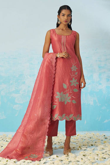 Fancy Fabric Embroidered Pink Readymade Salwar Suit