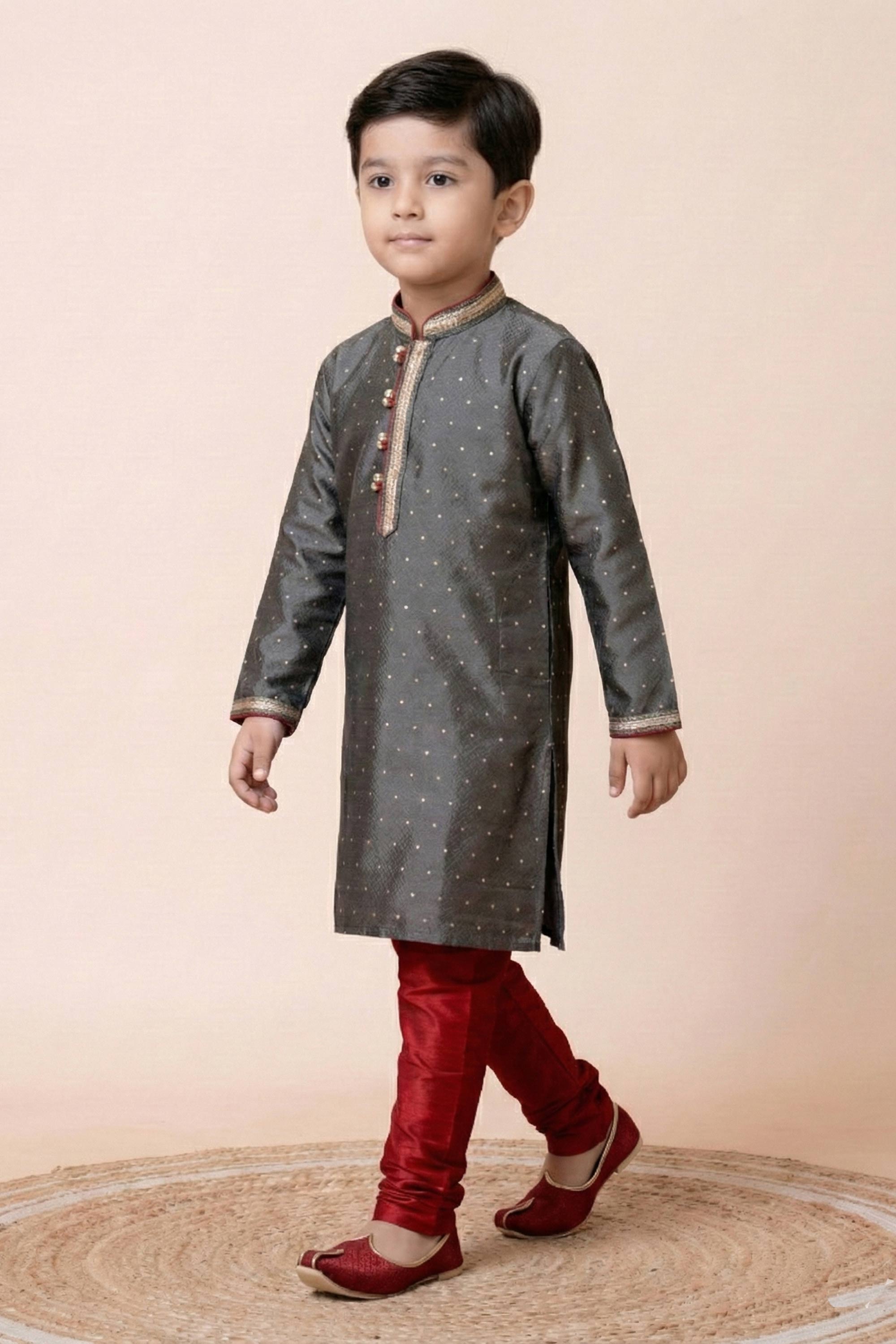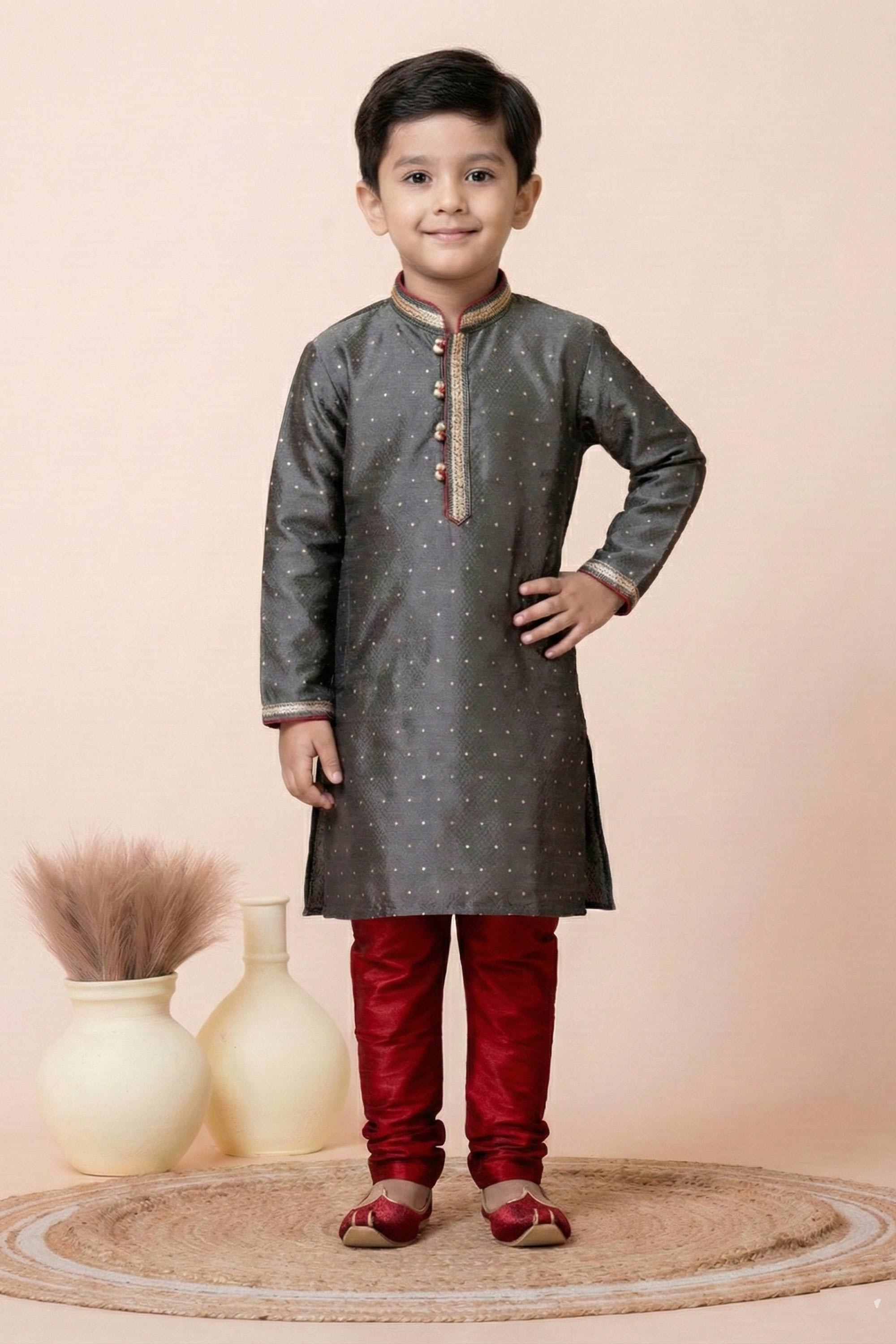 Fancy Fabric Grey Festive Wear Readymade Kurta Pyjama For Boys