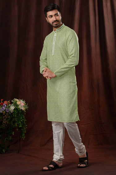 Fancy Fabric Sea Green Color Bandhani Print Readymade Kurta Pyjama For Men