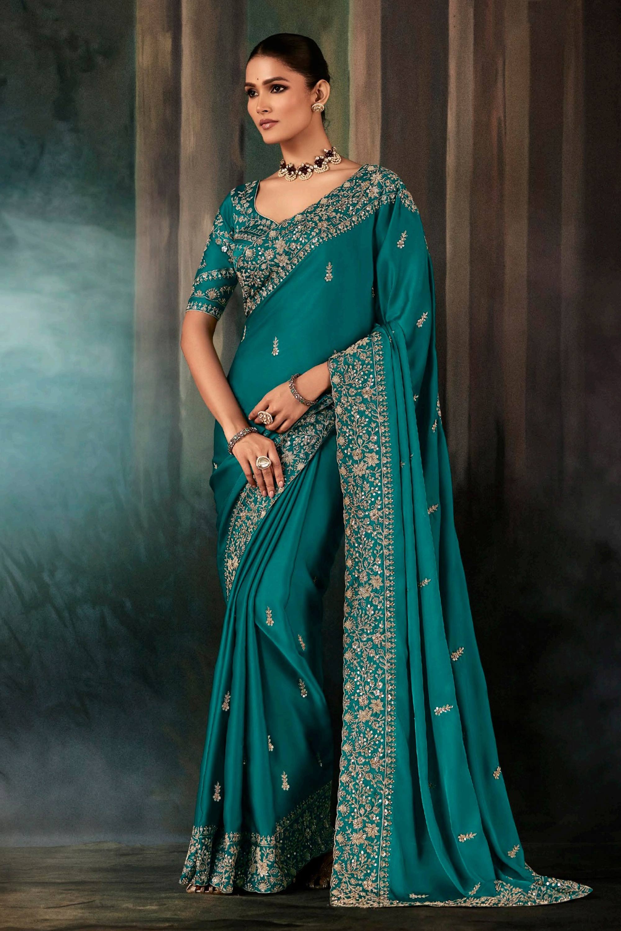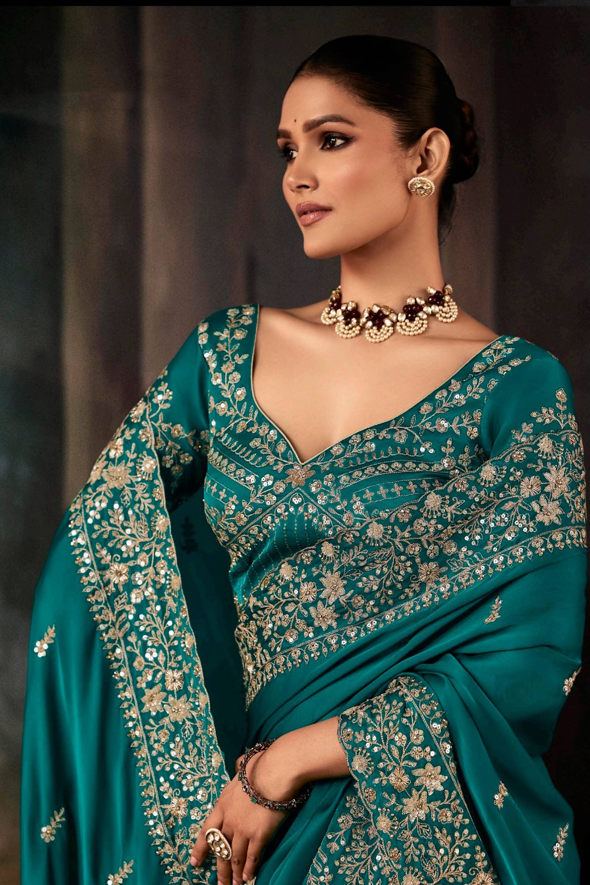 Fancy Fabric Teal Wedding Wear Saree