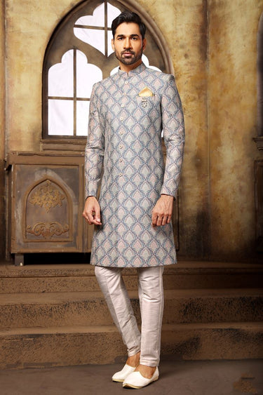 Fantastic Blue Color Brocade Fabric Indo Western For Men