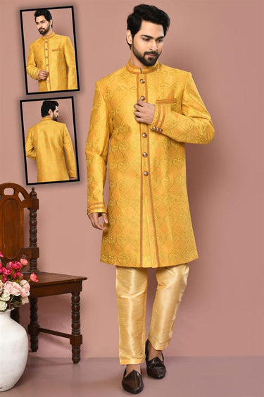 Fascinate Art Silk Fabric Sherwani In Mustard Color