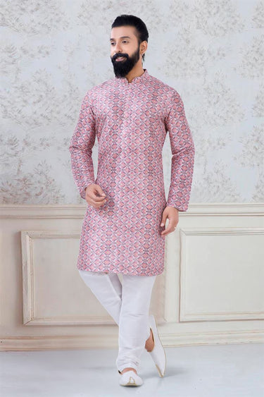 Fascinate Pink Color Art Silk Fabric Reception Wear Trendy Readymade Kurta Pyjama For Men