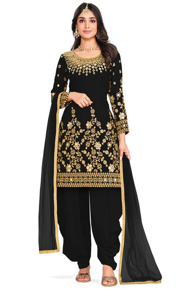 Fascinating Black Color Art Silk Fabric Patiala Suit