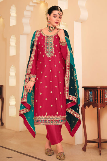 Fascinating Pink Color Chinon Fabric Embroidered Salwar Suit