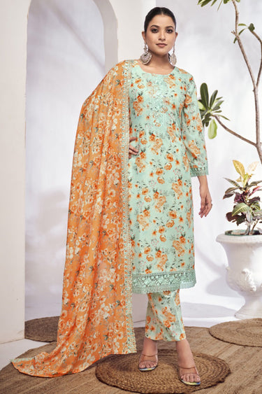 Fascinating Sea Green Color Cotton Fabric Digital Printed Salwar Suit