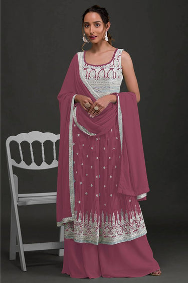 Faux Georgette Designer Palazzo Suit In Pink