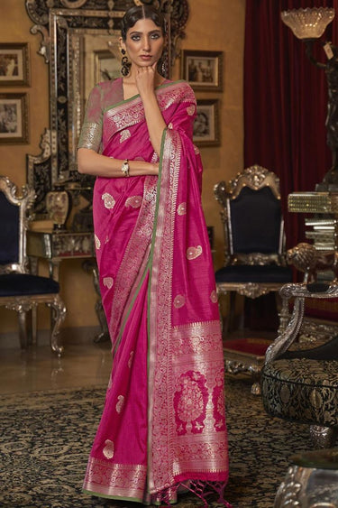 Festival Wear Art Silk Fabric Rani Color Weaving Work Spectacular Saree