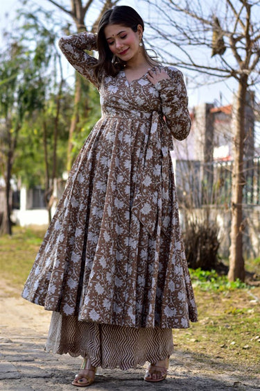 Festival Wear Chikoo Color Enthralling Digital Printed Work Kurti With Bottom In Cotton Silk Fabric