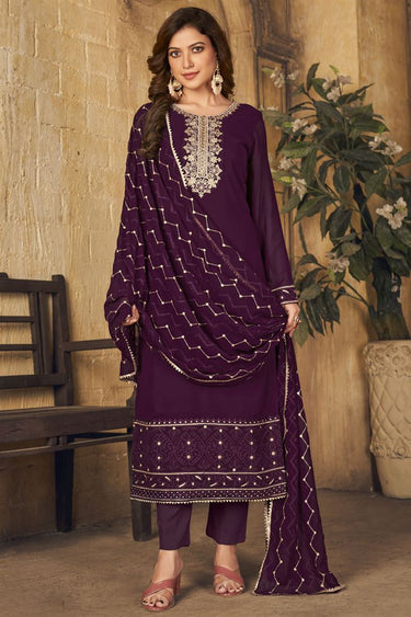 Festival Wear Purple Color Georgette Fabric Precious Salwar Suit With Embroidered Work