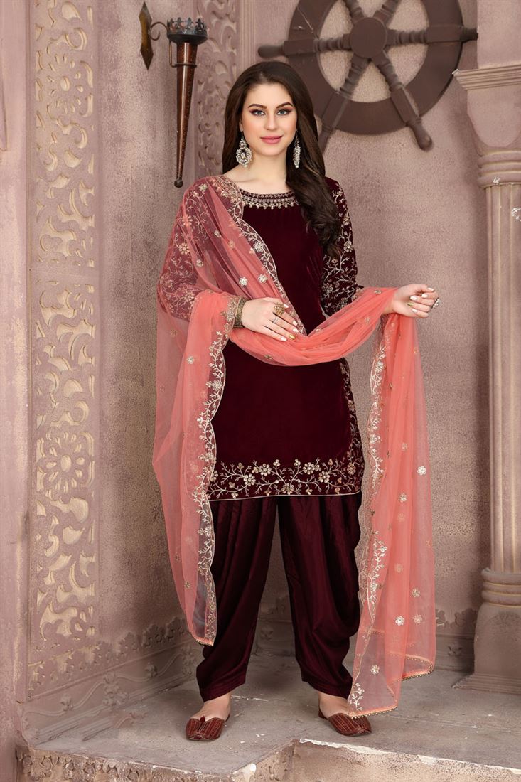 Festive Wear Art Silk Fabric Embroidered Patiala Suit In Black Color